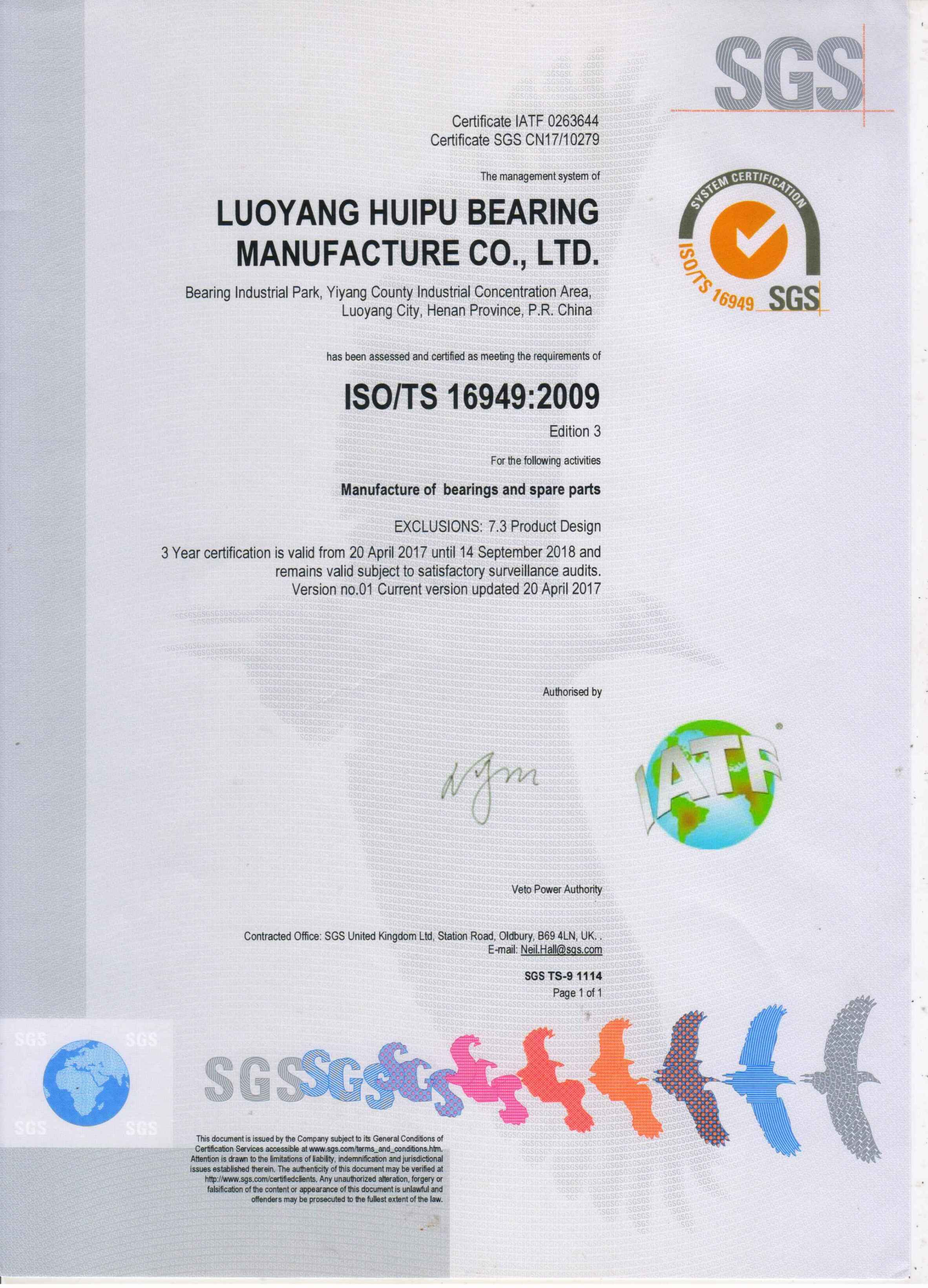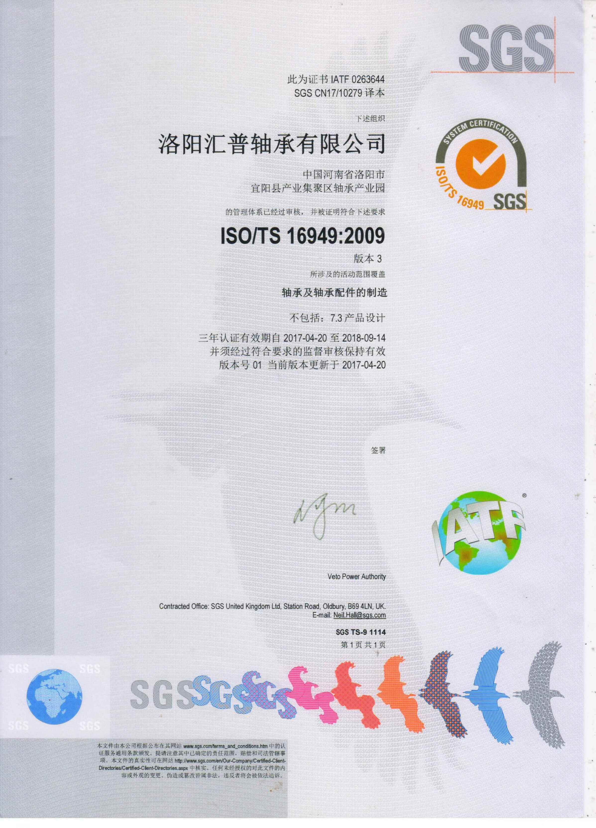 2017年4月匯普軸承順利通過(guò)TS16949質(zhì)量體系認(rèn)證